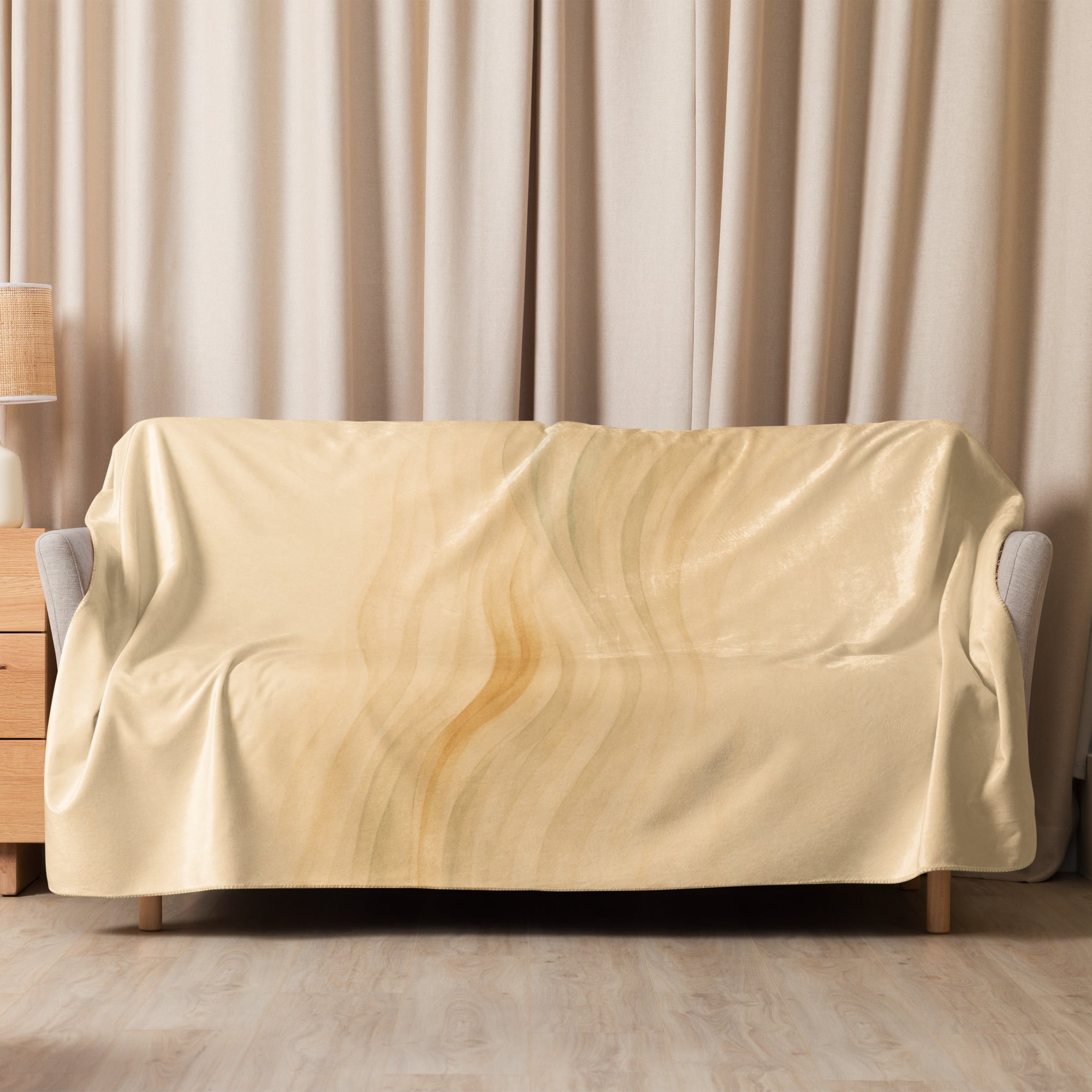 The Refined Qi Blanket – Stillness in Motion Edition embodies the balance between softness and vitality. Inspired by the gentle rhythm of breath and energy flow, its design features subtle waves in cream, jade, and golden hues—an elegant abstraction of qi itself.