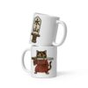 Bring fierce focus to your favorite drink. This sturdy white ceramic mug features the Water Mountain cat warrior in ornate Chinese garb with piercing eyes on one side and the sword motif inscribed with 水山 (“Water Mountain”) on the other. Perfect for morning coffee, evening tea, or anything in between, it’s built to inspire discipline and determination.