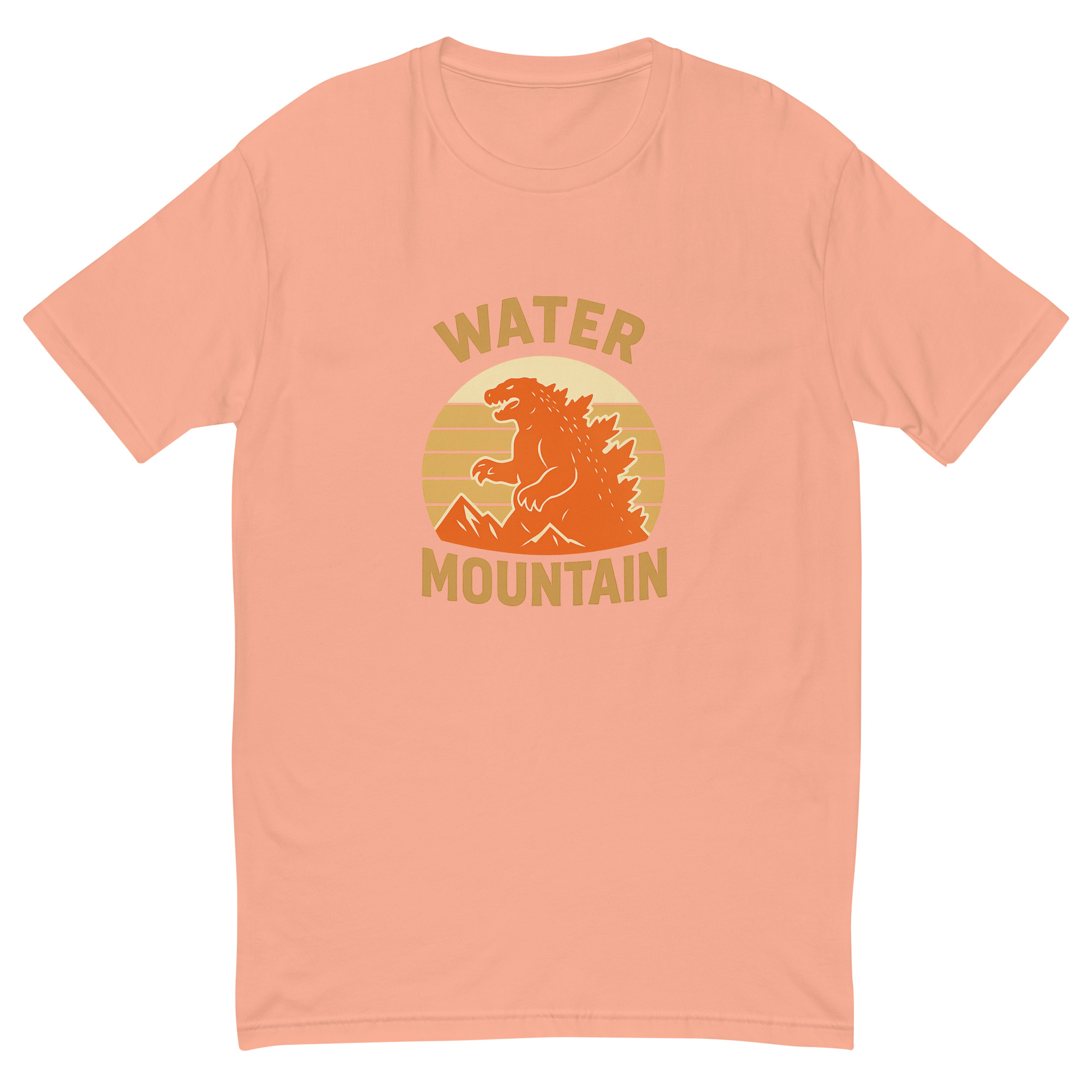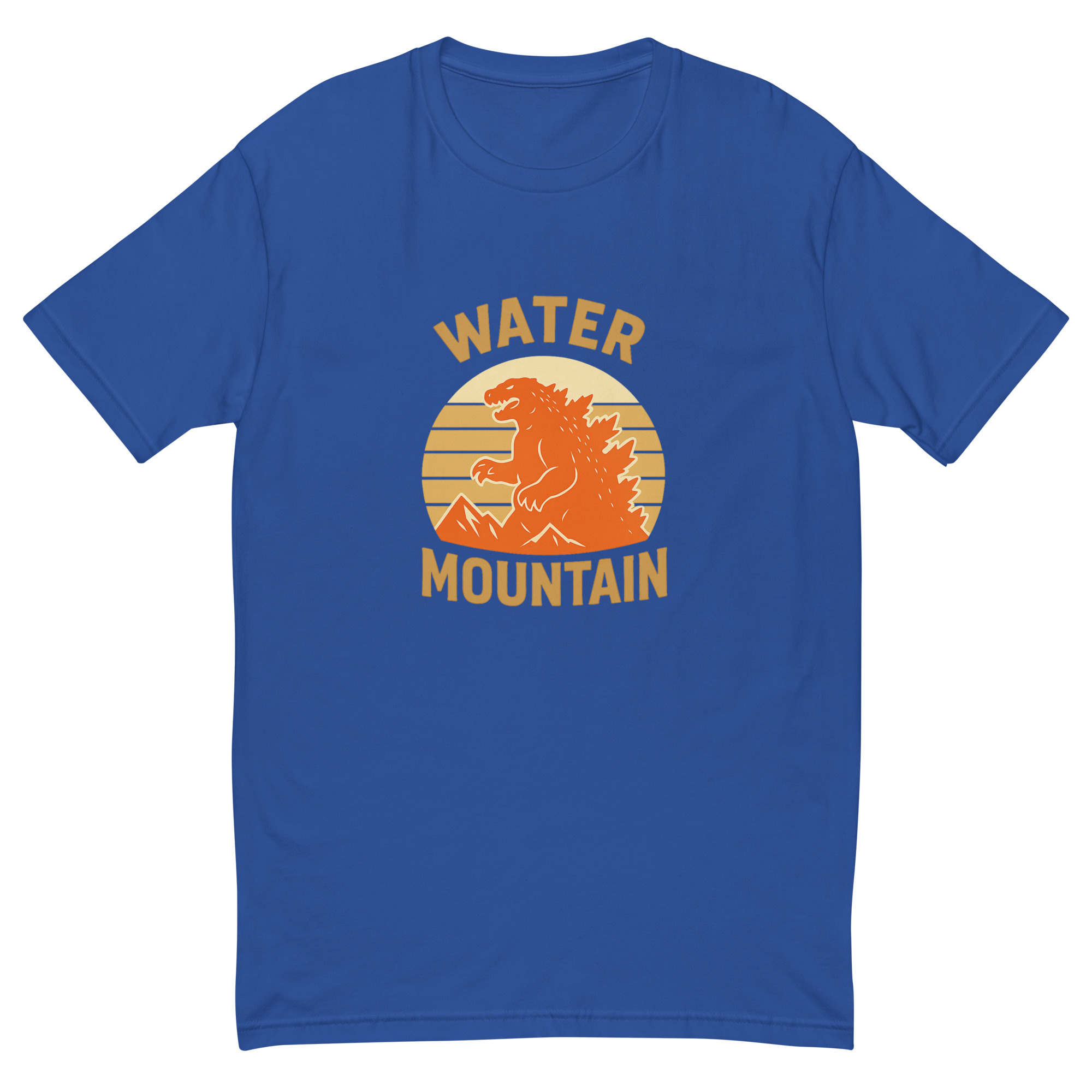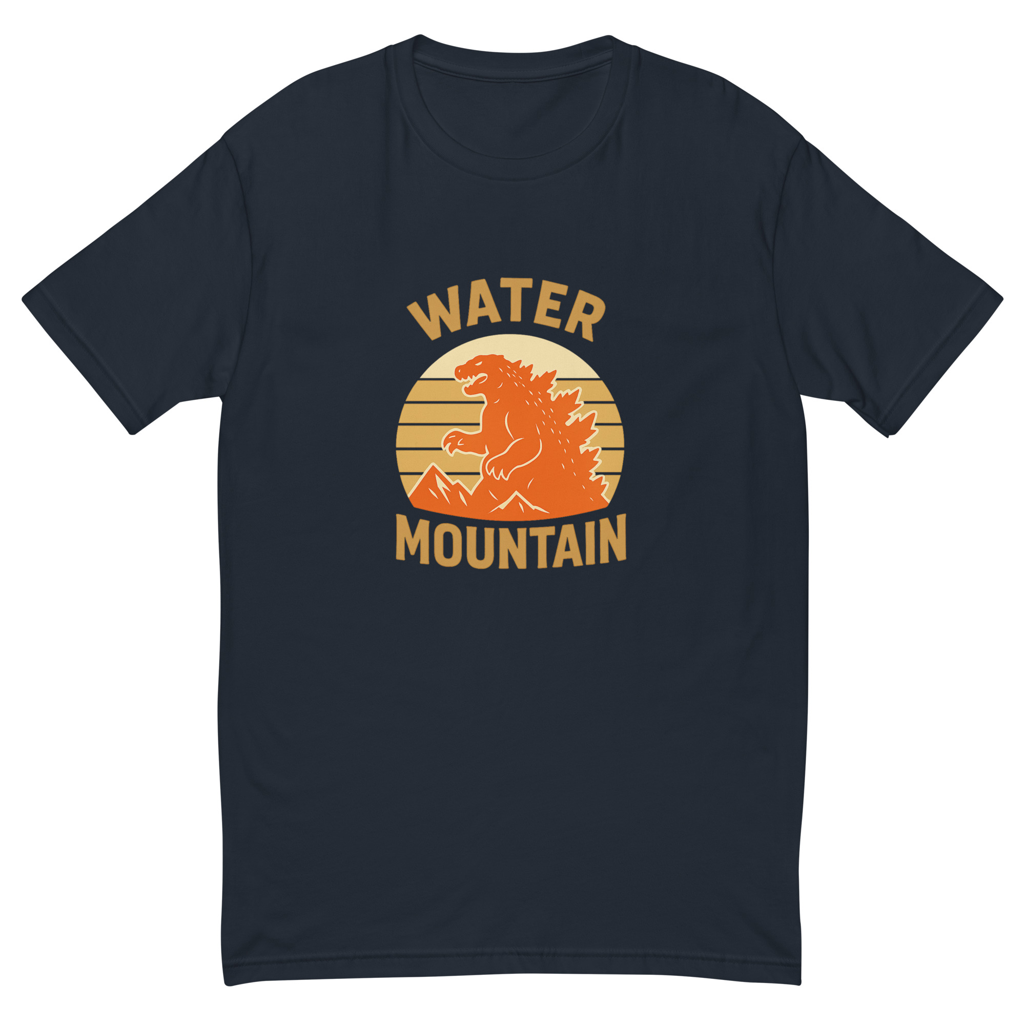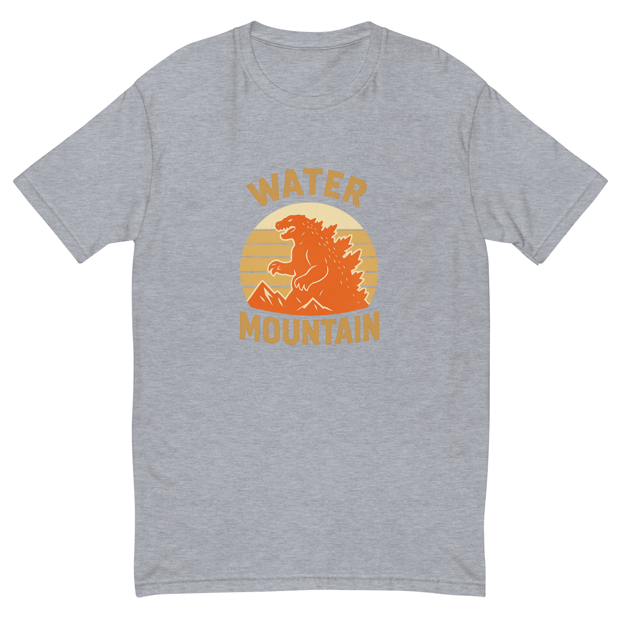 Bring bold energy and timeless style to your wardrobe with the Water Mountain Vintage Emblem Tee. Featuring a full-chest print of our classic logo—an original monster silhouette rising against retro-inspired sunstripes and mountain peaks—this shirt is a standout for fans of power, nature, and subtle rebellion.